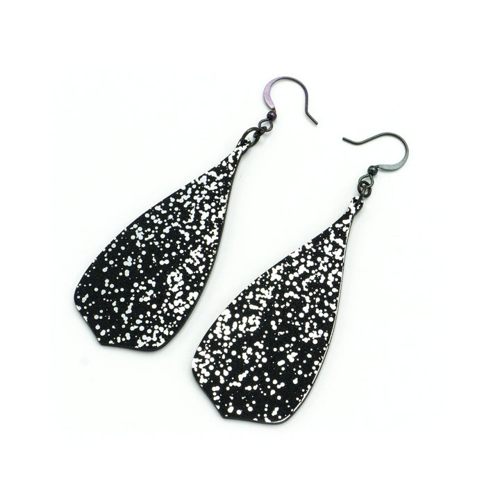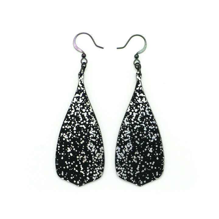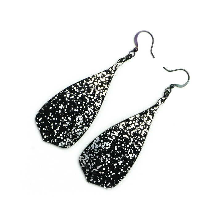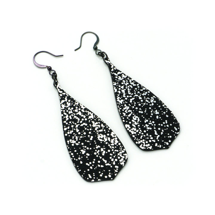 Flared Bevel Drops [Splatter_02R] // Acrylic Earrings - Brushed Silver, Black