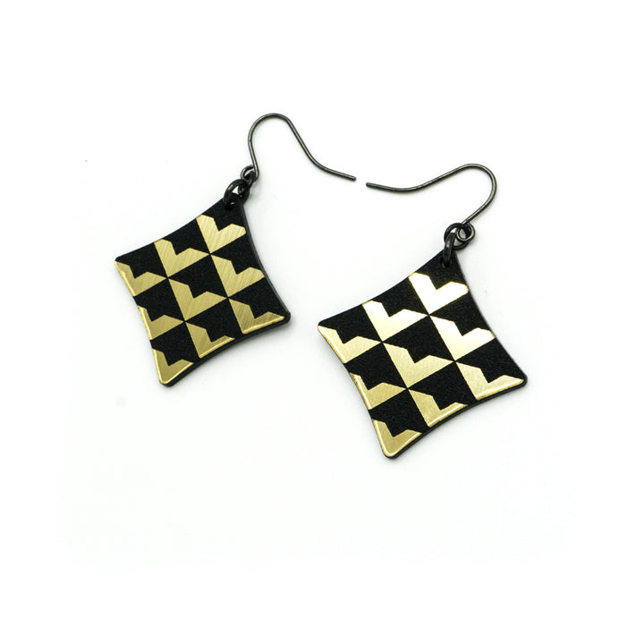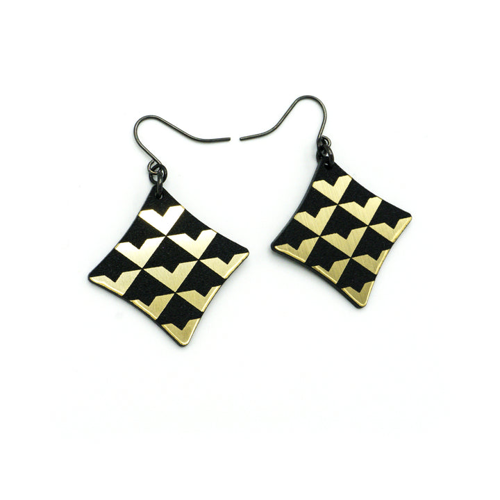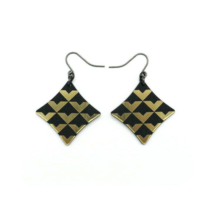 Concave Diamond [1R] // Acrylic Earrings - Brushed Gold, Black