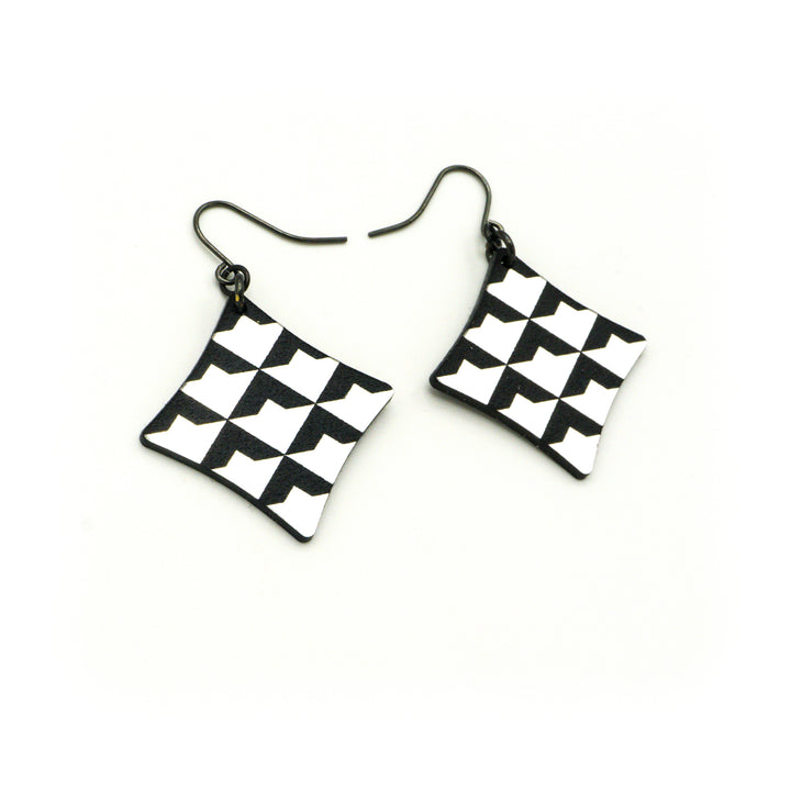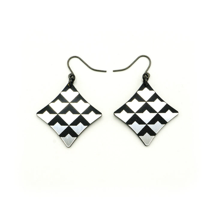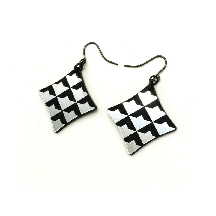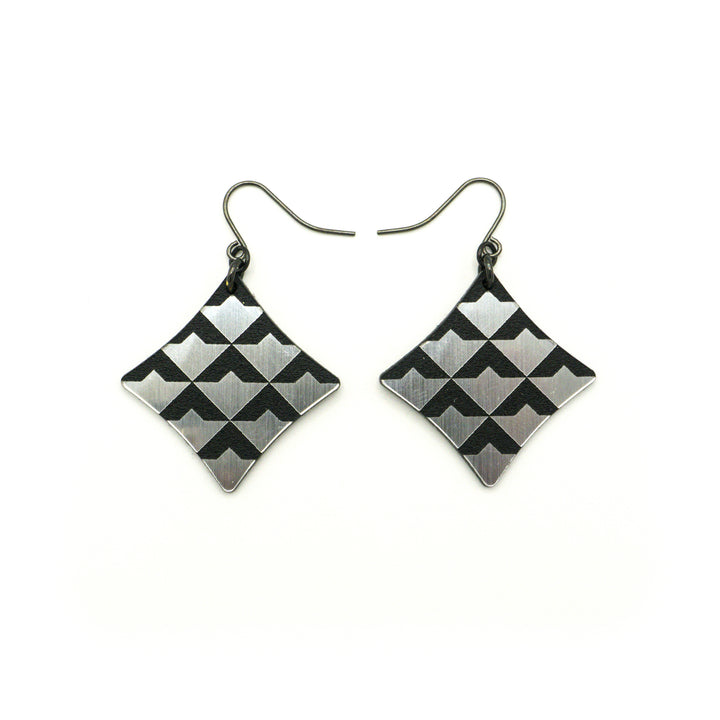 Concave Diamond [2] // Acrylic Earrings - Brushed Silver, Black