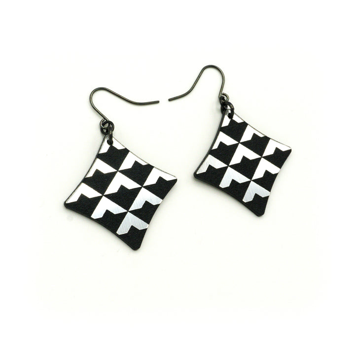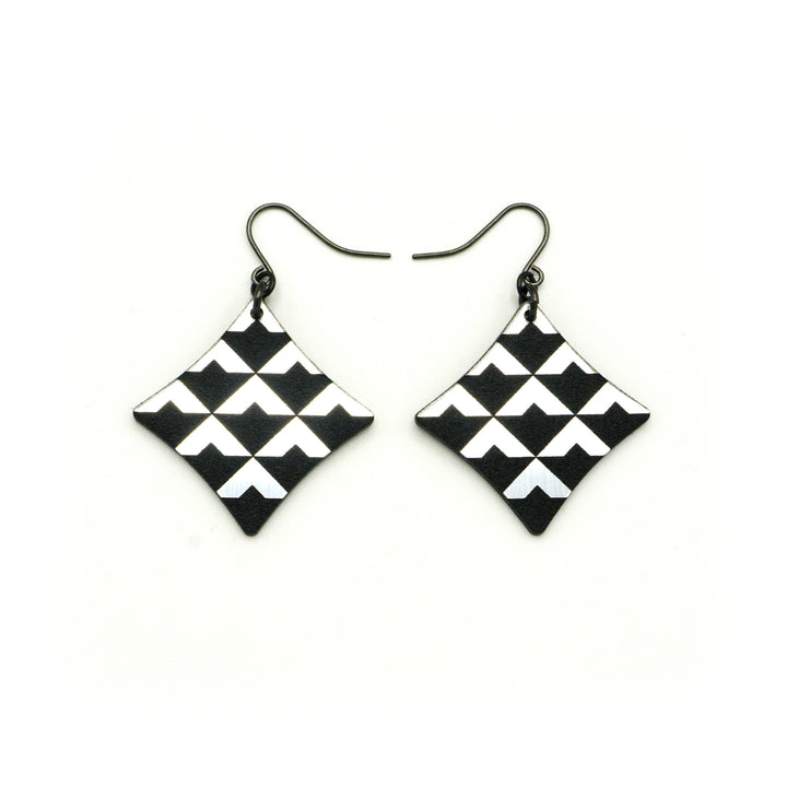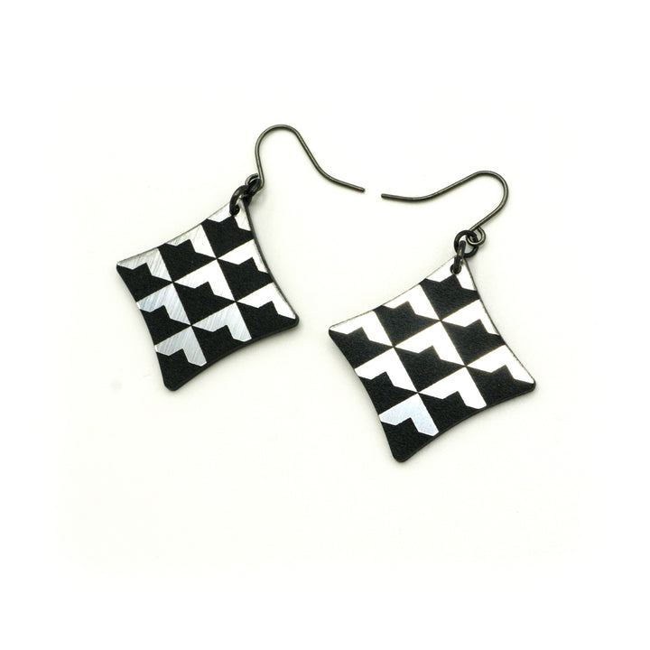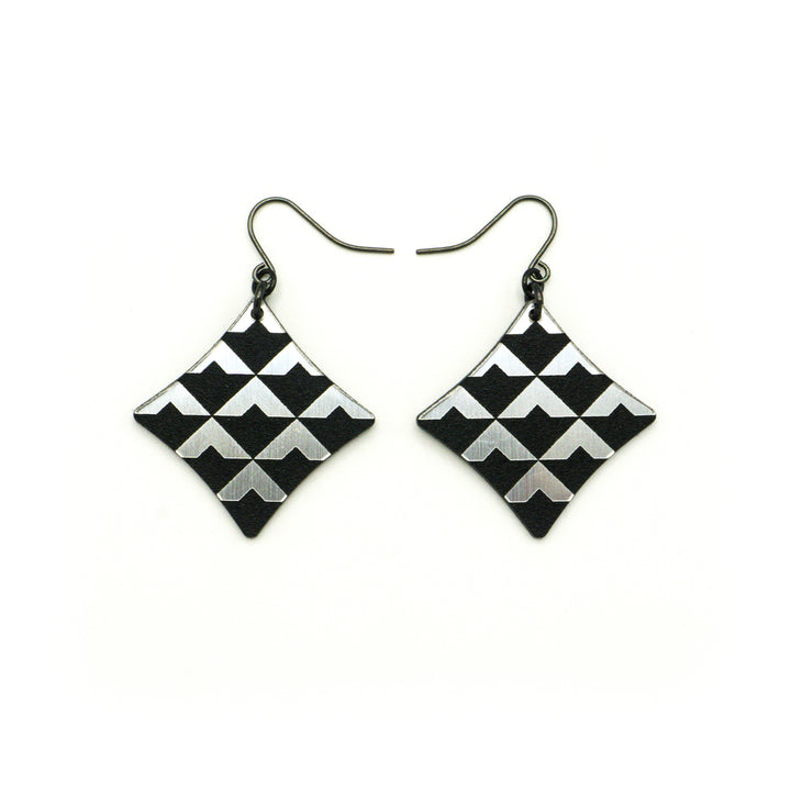 Concave Diamond [2R] // Acrylic Earrings - Brushed Silver, Black