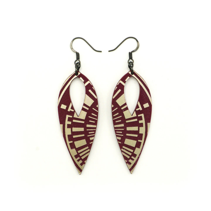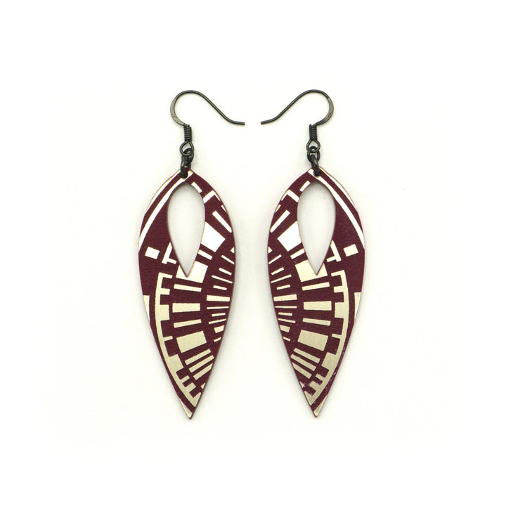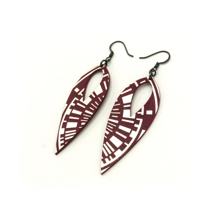 Nativas [06R] // Acrylic Earrings - Brushed Nickel, Burgundy