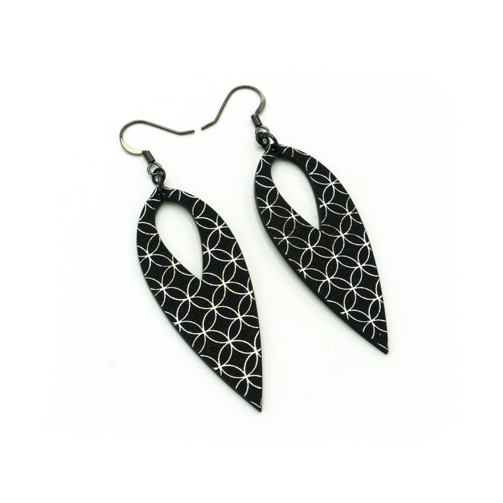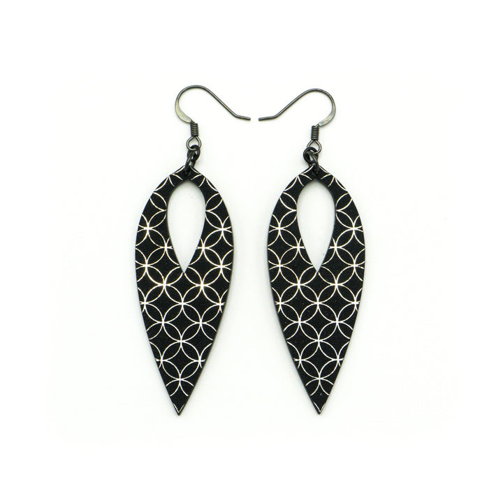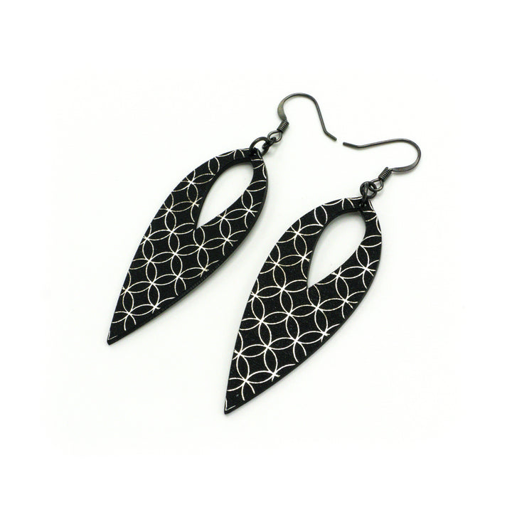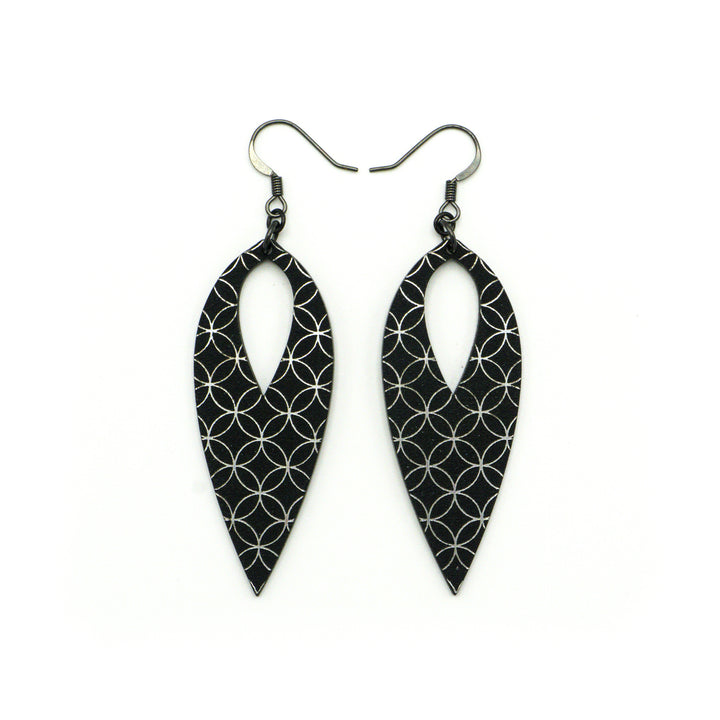 Nativas [27R] // Acrylic Earrings - Brushed Silver, Black